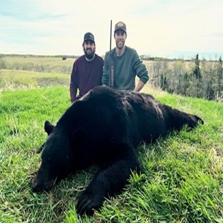 Alberta is home to giant black bears. Our black bear hunts are offered as adrenaline pumping spot-and-stalk hunts over open pasture or grain fields, as baiting is not permitted in our management area. The inability to bait bears significantly reduces the hunting pressure in the area, allowing older bears to reach a trophy caliber.