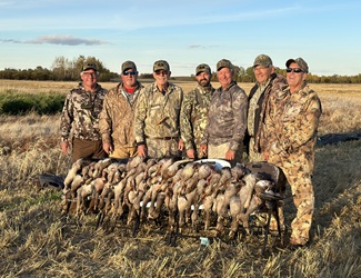 September hunts are warm-weather hunts targeting mainly Canada geese, speckle belly geese, mallards and pintails. October dates can offer much cooler temperatures and target all of the above species as well as snow geese. Our daily bag limits per hunter are 8 dark geese (specks and Canadas combined), 8 ducks (all species combined), and 50 snow